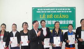 Ngày 10/4/2015, Hội Bảo trợ NKT &TMC tỉnh Hà Tĩnh phối hợp với Trung tâm Dạy nghề, Giới thiệu, GQVL cho người tàn tật tỉnh tổ chức Lễ bế giảng lớp dạy nghề trồng rừng và chăm sóc rừng